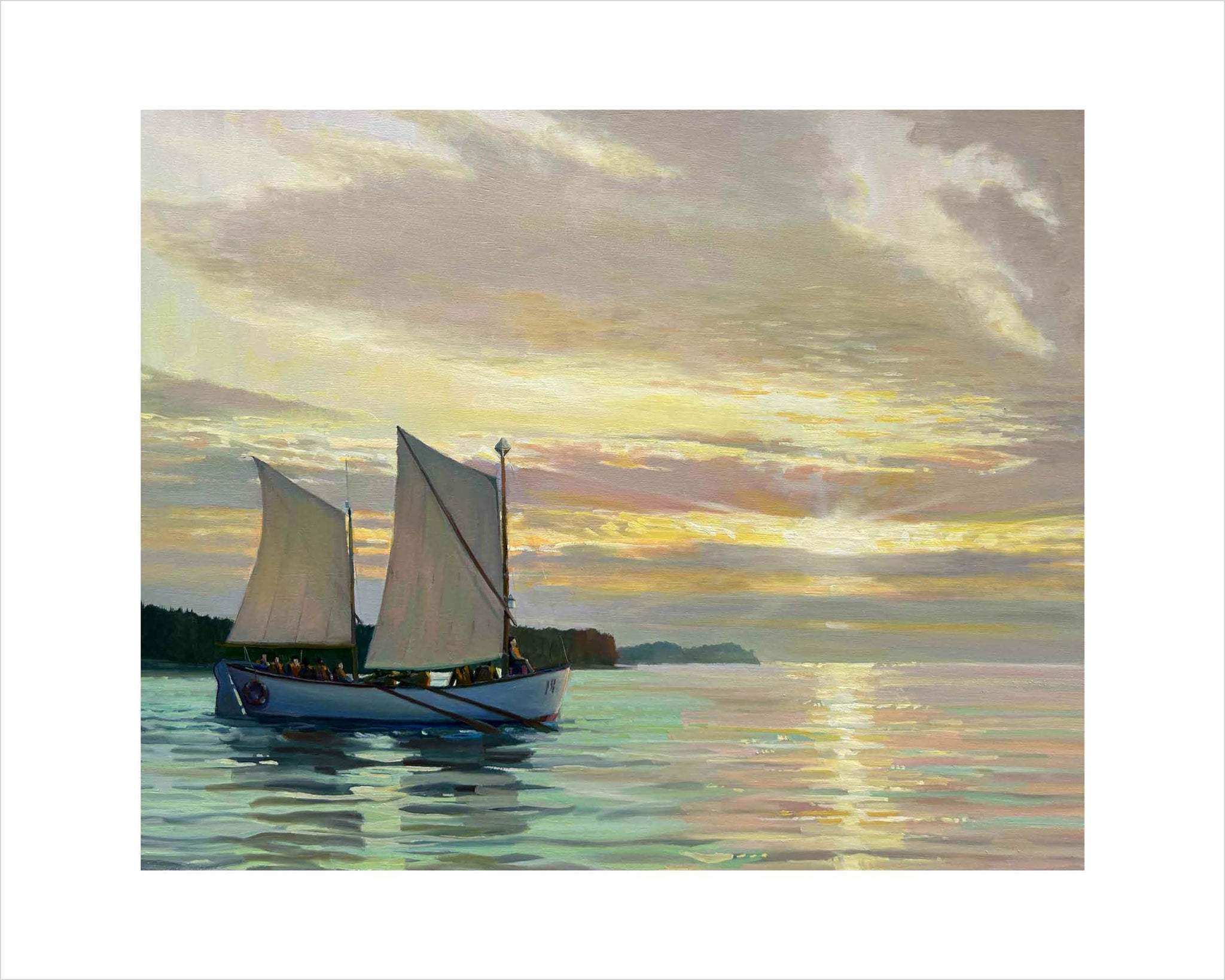Every now and then, a piece of art stops you long enough to feel the place it came from—the salt in the air, the early light, the quiet grit of getting underway. That’s exactly what Maine artist and HIOBS staff alumnus Cooper Dragonette captures in his paintings of Hurricane Island.